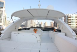 A stunning VIP luxurious yacht offering sleek exterior lines and superb interior luxury. Sophisticated parquet wooden flooring, discrete ceiling lights, warm wooden walls are all a stunning offset against the blue backdrop of the ocean. Fully air-conditioned throughout and completely equipped with full Bose surround sound system, she vows to deliver a distinguished delight. VIP cabins are the full width of the yachts beam and include large comfortable beds and aesthetic furnishing with wide windows all around the yacht providing beautiful panoramic views. Guest can choose to urbane dine area inside or the modern saloon that invites one to spend relaxing moments with friends and family.